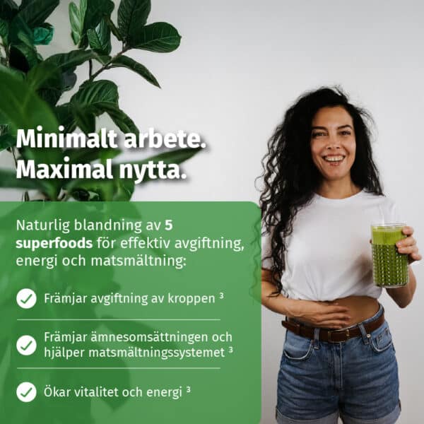 Naturlig blandning av 5 superfoods för effektiv avgiftning, energi och matsmältning: