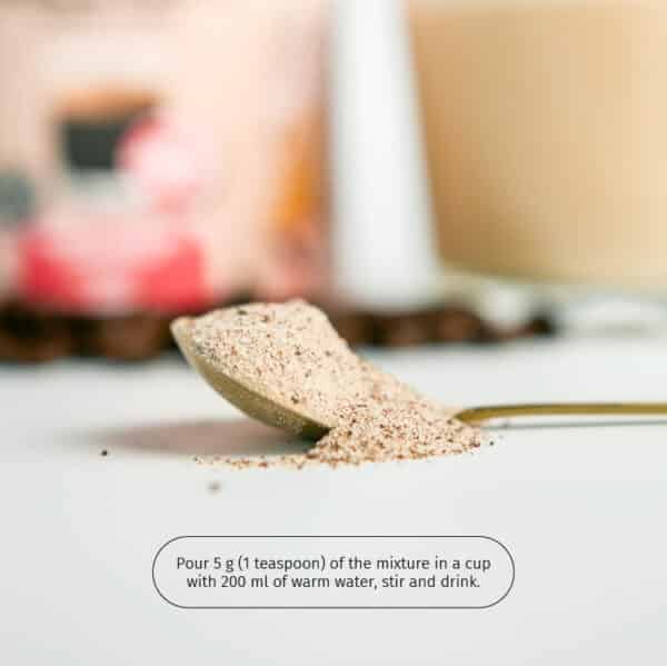 Pour 200 mL of warm water over 5 g (1 teaspoon) of mixure in a cup, stir and drink.