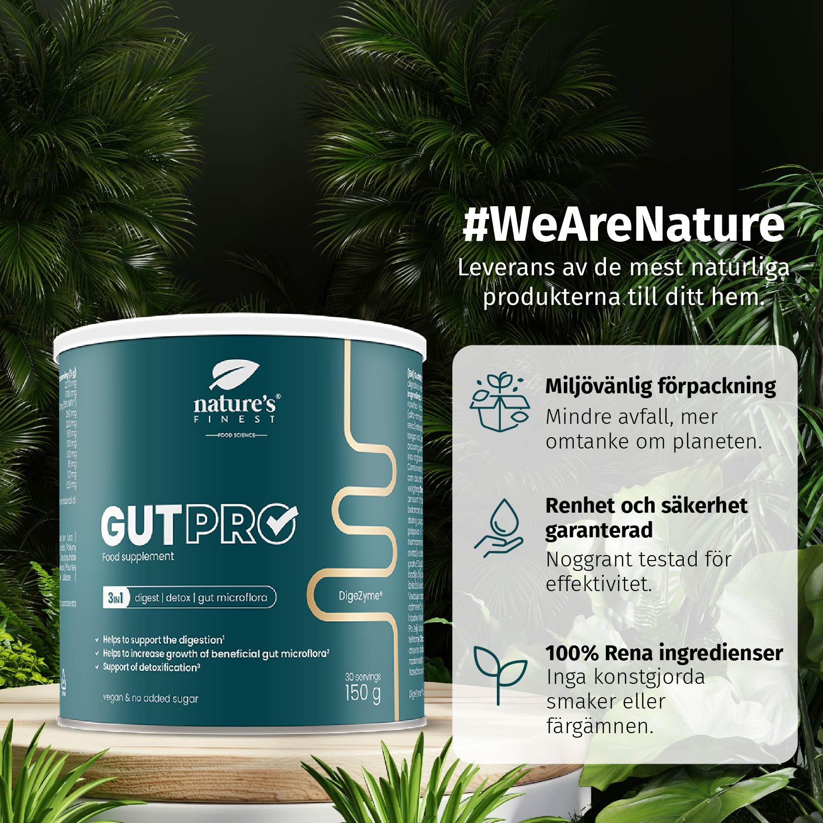 Detta är ingen snabbfix utan en högkvalitativ formula med varaktig effekt. GutPRO förenar stöd för matsmältning⁷, avgiftning³ och tarmflora³ i en lättanvänd formula – så att du enkelt kan hålla fast vid dina rutiner.