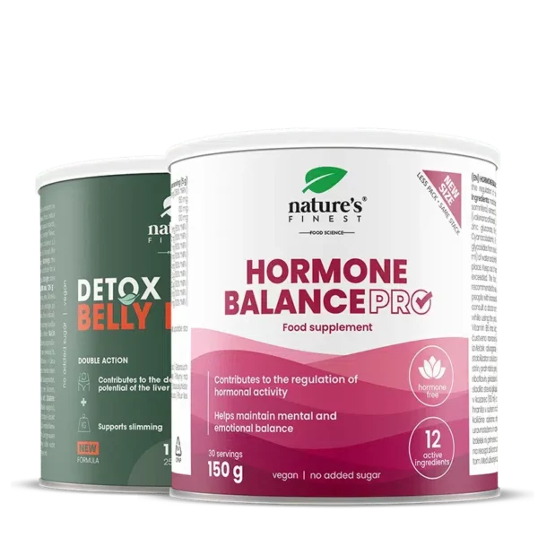 Paketet innehåller två produkter: Hormone Balance PRO och Detox Belly Burn.