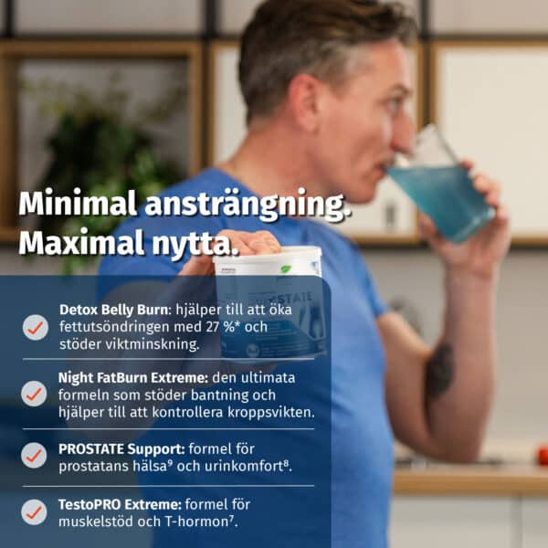 På morgonen blanda 1 skopa (5 g) i ett glas vatten (200 ml) och drick.