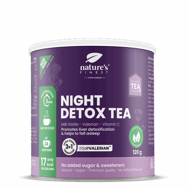 Naturlig nattdetox-teblandning med kraftfulla medicinska örter – valeriana, mjölktistel och vitt teextrakt